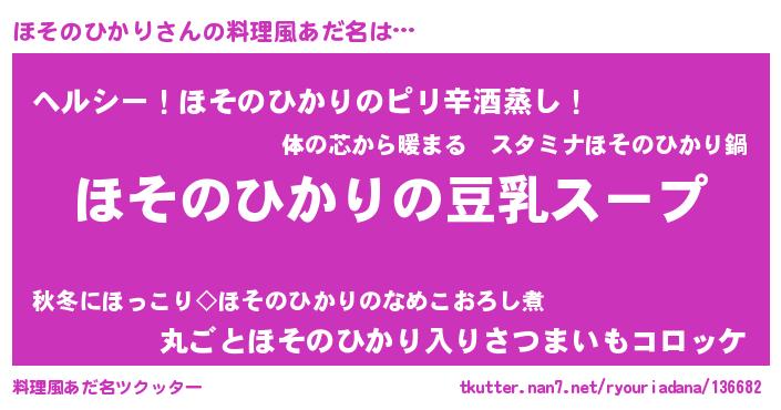 | 胡散臭い通販商品みたいなあだ名 | 『信頼と実績のネックレス…その名も「ほそのひかり」』 |