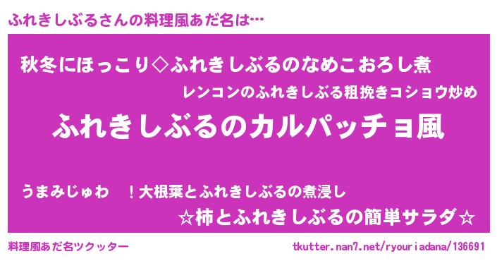 | 意味不明あだ名 | 『住所不定無職ふれきしぶる(74歳)』 |
