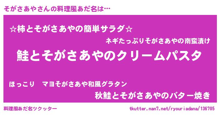 | ヒーロー風カッコイイあだ名 | 『慈愛の使者そがさあや』『仮面ソガダー』 |