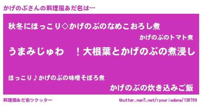 | ヘコむあだ名 | 『酢こんぶ』『かげにー』『かげお』 |