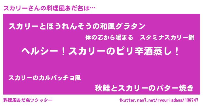 | 男性向けラノベタイトル風あだ名 | 『Re:スカリーから始める異世界生活』 |