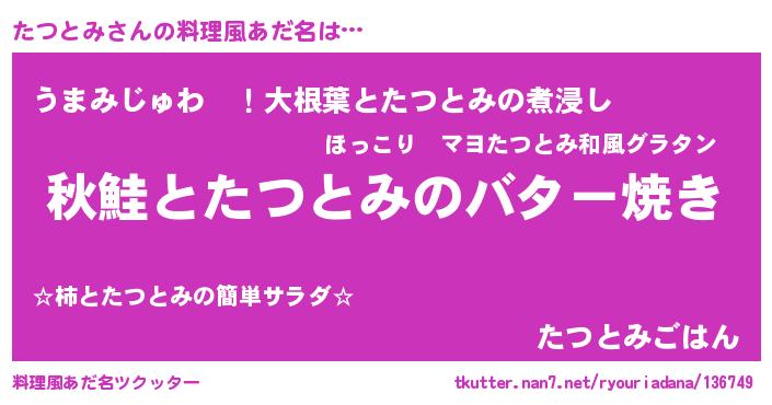 | ヘコむあだ名 | 『たつとみ(笑)』『酢こんぶ』 |