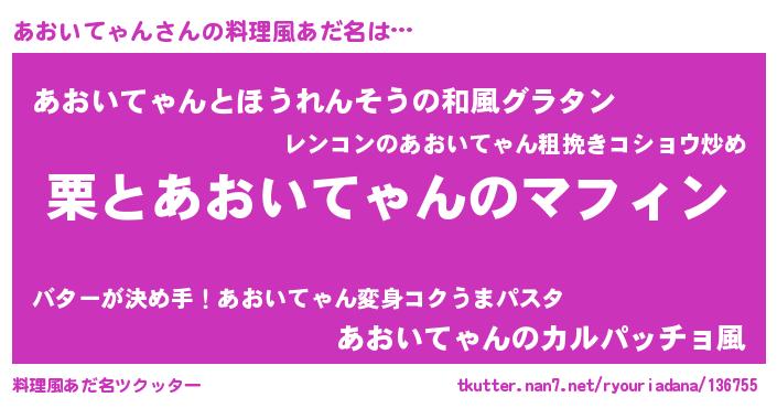 | ヒーロー風カッコイイあだ名 | 『仮面アオダー』『最強戦士アオイテャン』 |