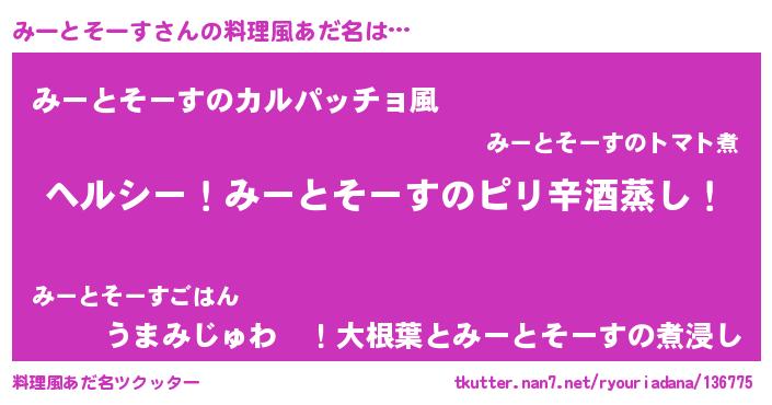 | 欧米人風あだ名 | 『ケンブリッジみーとそーす』 |