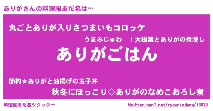 | 男性向けラノベタイトル風あだ名 | 『アリガスレイヤー』『ありがの憂鬱』 |