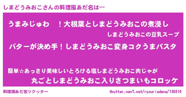 | ピコ太郎風あだ名 | 『シシ太郎』『ピシ十郎』『シマ五郎』 |