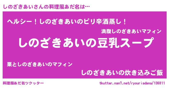 | ヒーロー風カッコイイあだ名 | 『暗黒騎士シノ』『最強戦士シノザキアイ』 |