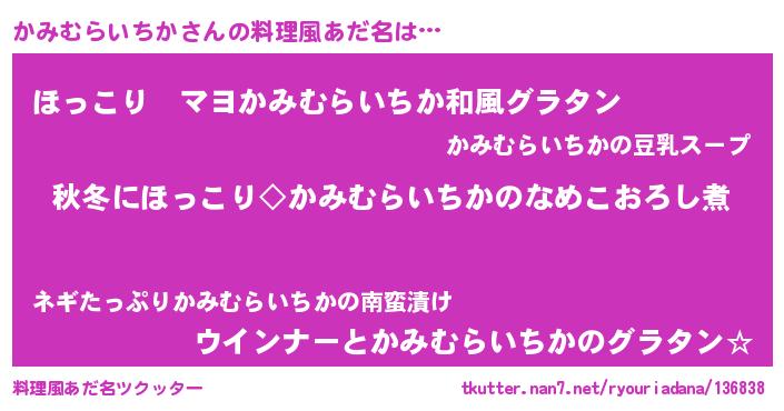 | 男性向けラノベタイトル風あだ名 | 『かみむらいちかに滅ぼされるだけの簡単なお仕事です』 |