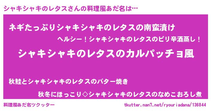 | 男性向けラノベタイトル風あだ名 | 『魔弾の王とシャキシャキのレタス』 |