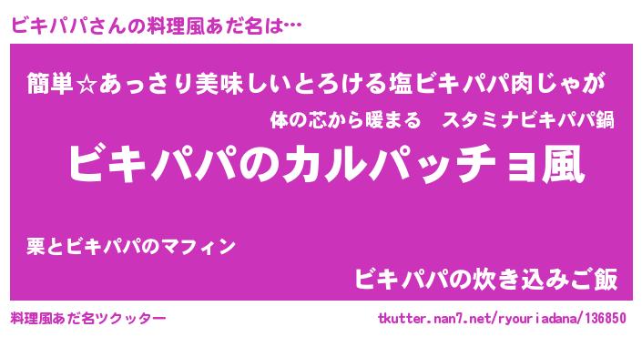 | 意味不明あだ名 | 『住所不定無職ビキパパ(89歳)』 |