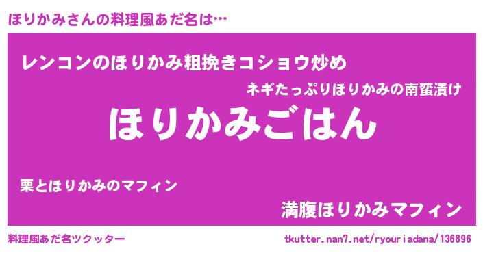 | ヘコむあだ名 | 『ほりかみ(遠い目)』『ほりにー』 |