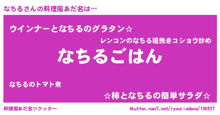 | 意味不明あだ名 | 『たけのこ科なちる属』『自称なちる』 |