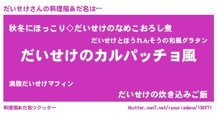 | 意味不明あだ名 | 『住所不定無職だいせけ(39歳)』 |