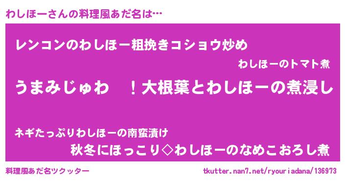 | 自動車の名前っぽいあだ名 | 『ワスラー』『レクワス』『フィッワ』 |