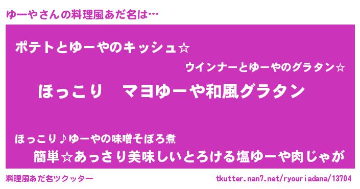 | 男性向けラノベタイトル風あだ名 | 『この素晴らしい世界にゆーやを!』 |