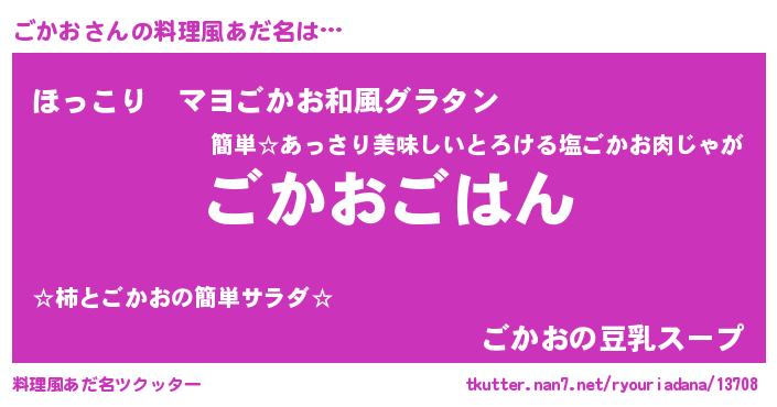 | ヘコむあだ名 | 『ごかぷりん』『ごかお(笑)』『豆乳』 |