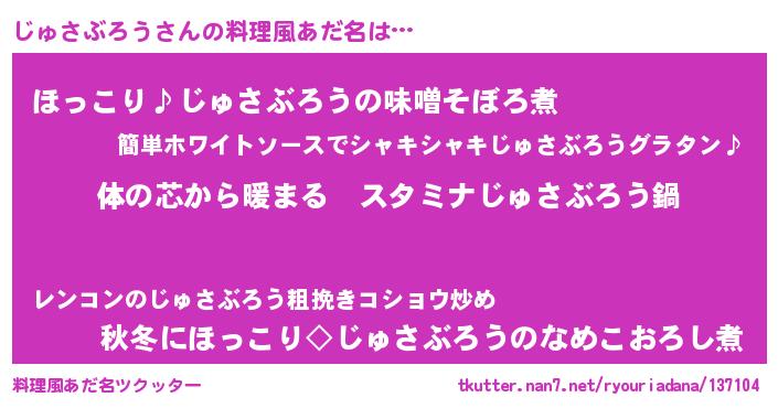 | 女子向けラノベタイトル風あだ名 | 『じゅさぶろうの雑貨屋さん』 |