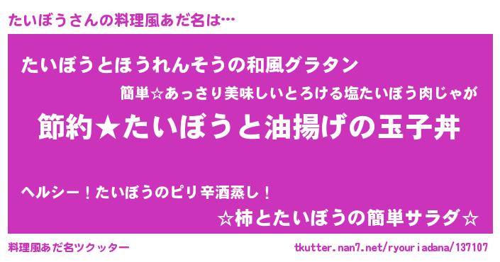 | ヘコむあだ名 | 『たいにー』『たいぼう(笑)』 |