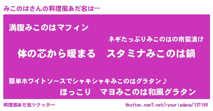 | ファンタジー風あだ名 | 『エターナルミコノハー』『ミコフェル』 |