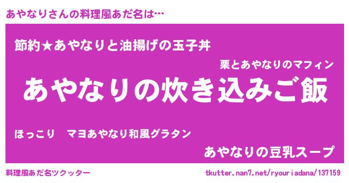 | 意味不明あだ名 | 『ペロリンあやなり』『自称あやなり』 |
