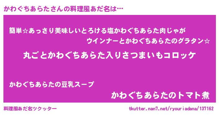 | ヘコむあだ名 | 『かわぐちあらた(笑)』『なまこ酢』 |