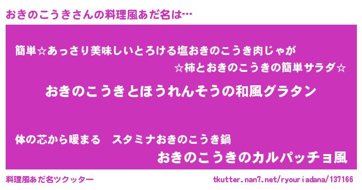 | ヒーロー風カッコイイあだ名 | 『ネオオキノコウキ』『仮面オキダー』 |