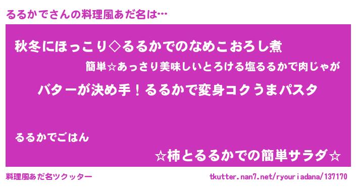 | ヘコむあだ名 | 『るるかで(小並感)』『豆乳』 |