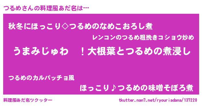 | 女子向けラノベタイトル風あだ名 | 『つるめの婚約者』『つるめアンティーク』 |