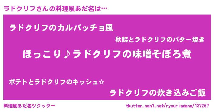 | 男性向けラノベタイトル風あだ名 | 『ラドクリフの憂鬱』 |
