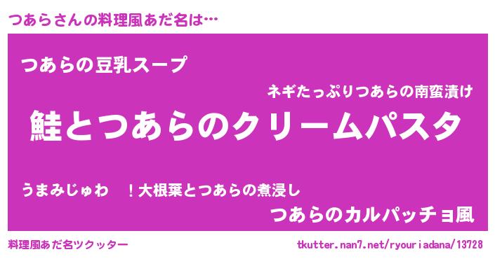 | 女子向けラノベタイトル風あだ名 | 『死神つあらの再婚』『つあらの婚約者』 |