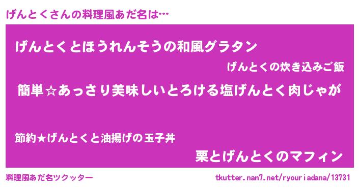 | 意味不明あだ名 | 『永久保存げんとく』『ニラ科げんとく属』 |