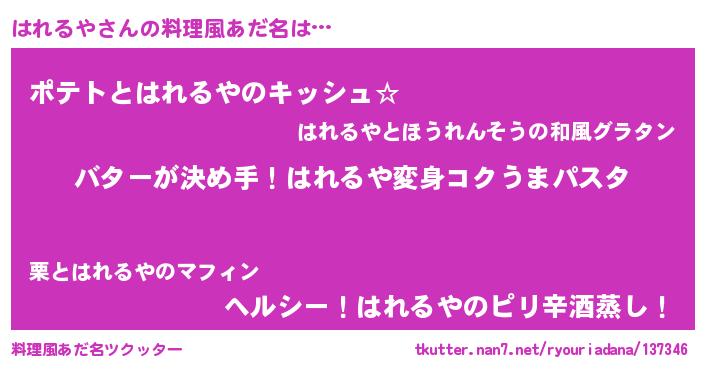 | 女子向けラノベタイトル風あだ名 | 『はれるや恋絵巻』『闇のはれるや』 |