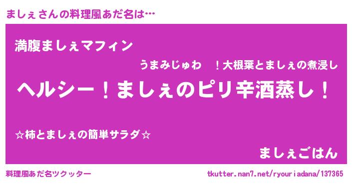 | 男性向けラノベタイトル風あだ名 | 『Re:ましぇから始める異世界生活』 |