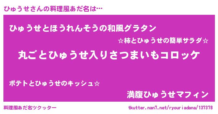 | ヘコむあだ名 | 『ひゅうせ(遠い目)』『ひゅぷりん』 |