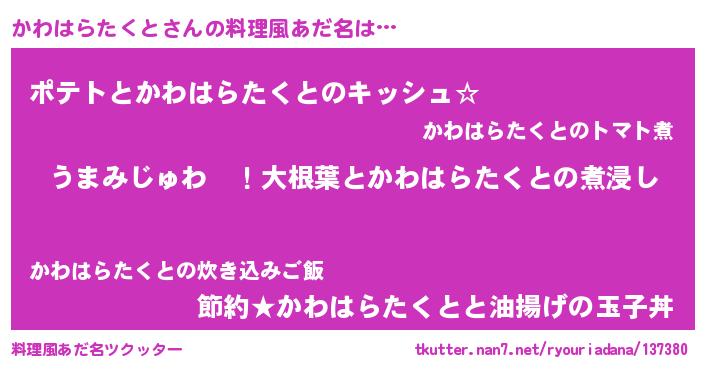 | 意味不明あだ名 | 『かわはらたくとフォーエバー』 |