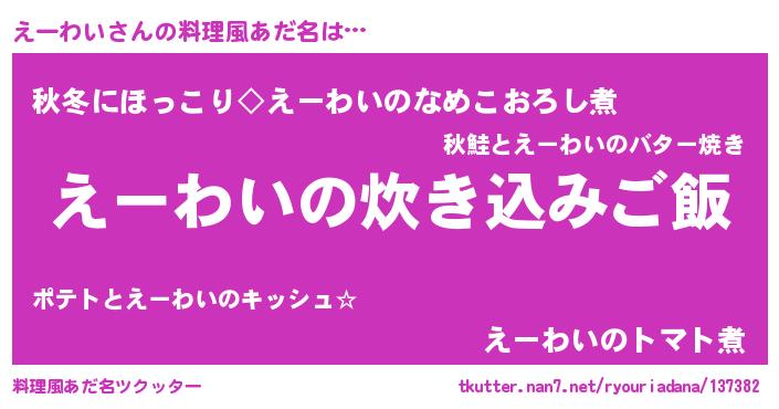| ヘコむあだ名 | 『えーわい(笑)』『えーっぺ』『牛乳』 |