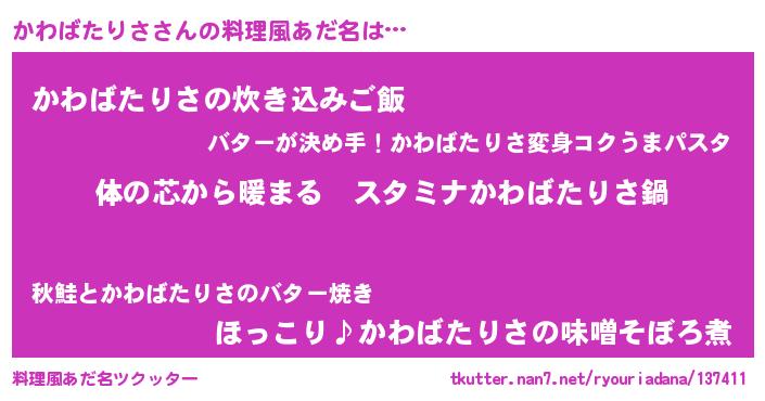 | 欧米人風あだ名 | 『かわばたりさクリステル』 |