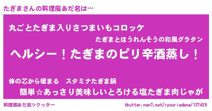 | 胡散臭い通販商品みたいなあだ名 | 『芸能人もオススメする高麗人参…その名も「たぎま」』 |