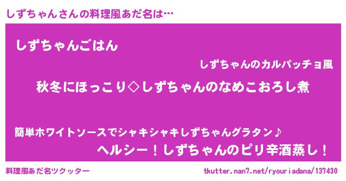| 恥ずかしいあだ名 | 『シズチャンデラックス』『シズリンリン』 |