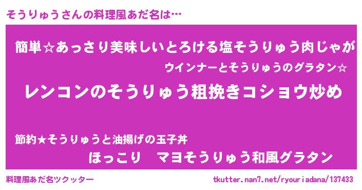 | ヘコむあだ名 | 『そうりゅう(笑)』『酢こんぶ』 |