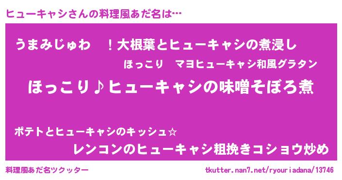 | ポケモン風あだ名 | 『ヒュチュウ』『ヒューダネ』 |