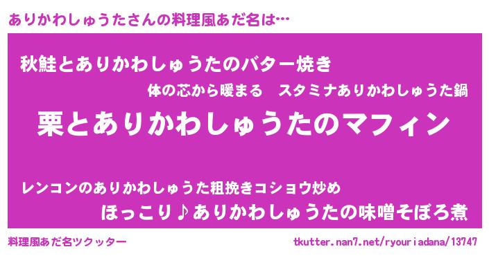 | ヘコむあだ名 | 『ありかわしゅうた(小並感)』『ありにゅー』 |