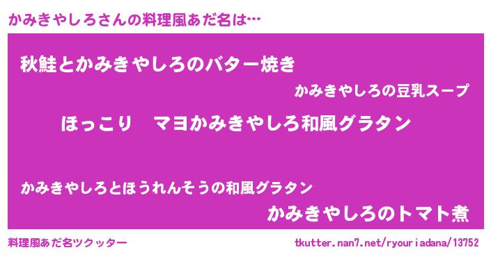 | 意味不明あだ名 | 『住所不定無職かみきやしろ(4歳)』 |