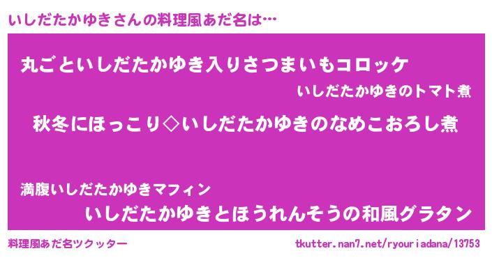 | ヘコむあだ名 | 『いしだたかゆき(爆)』『いしもー』 |