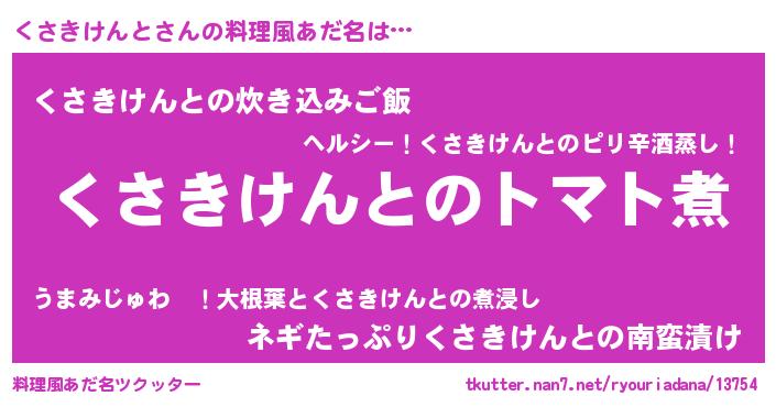 | 男性向けラノベタイトル風あだ名 | 『おまえをオタクにしてやるから、俺をくさきけんとにしてくれ! 』 |