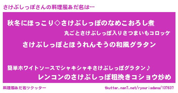 | 胡散臭い通販商品みたいなあだ名 | 『芸能人もオススメするアガリクス…その名も「さけぶしっぽ」』 |