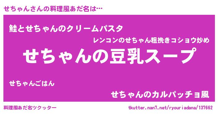 | 意味不明あだ名 | 『とにかく怪しいせちゃん』 |