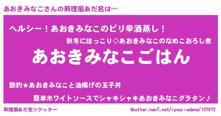 | 意味不明あだ名 | 『たけのこ科あおきみなこ属』 |