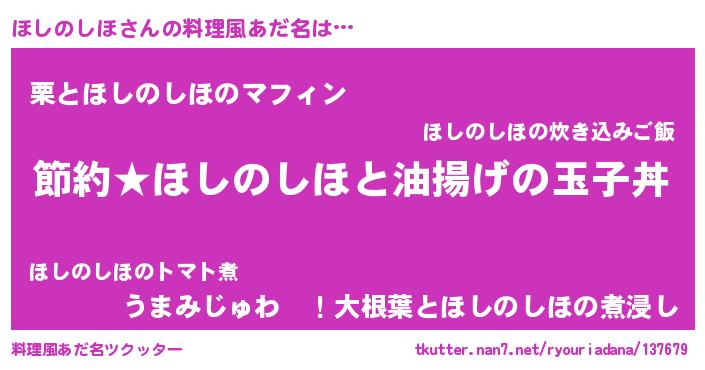 | ファンタジー風あだ名 | 『ホシフェル』『エターナルホシノシホー』 |