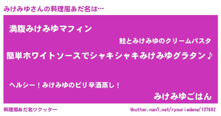 | ヘコむあだ名 | 『みけお』『みけみゆ(爆)』『牛乳』 |